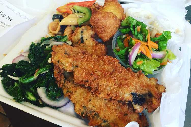 Vegan Soul Food Chikin Fried Mushrooms Collard Greens Mac Cheez And Dirty Rice Courtesy Of Soul Food Vegan In Houston R Vegan